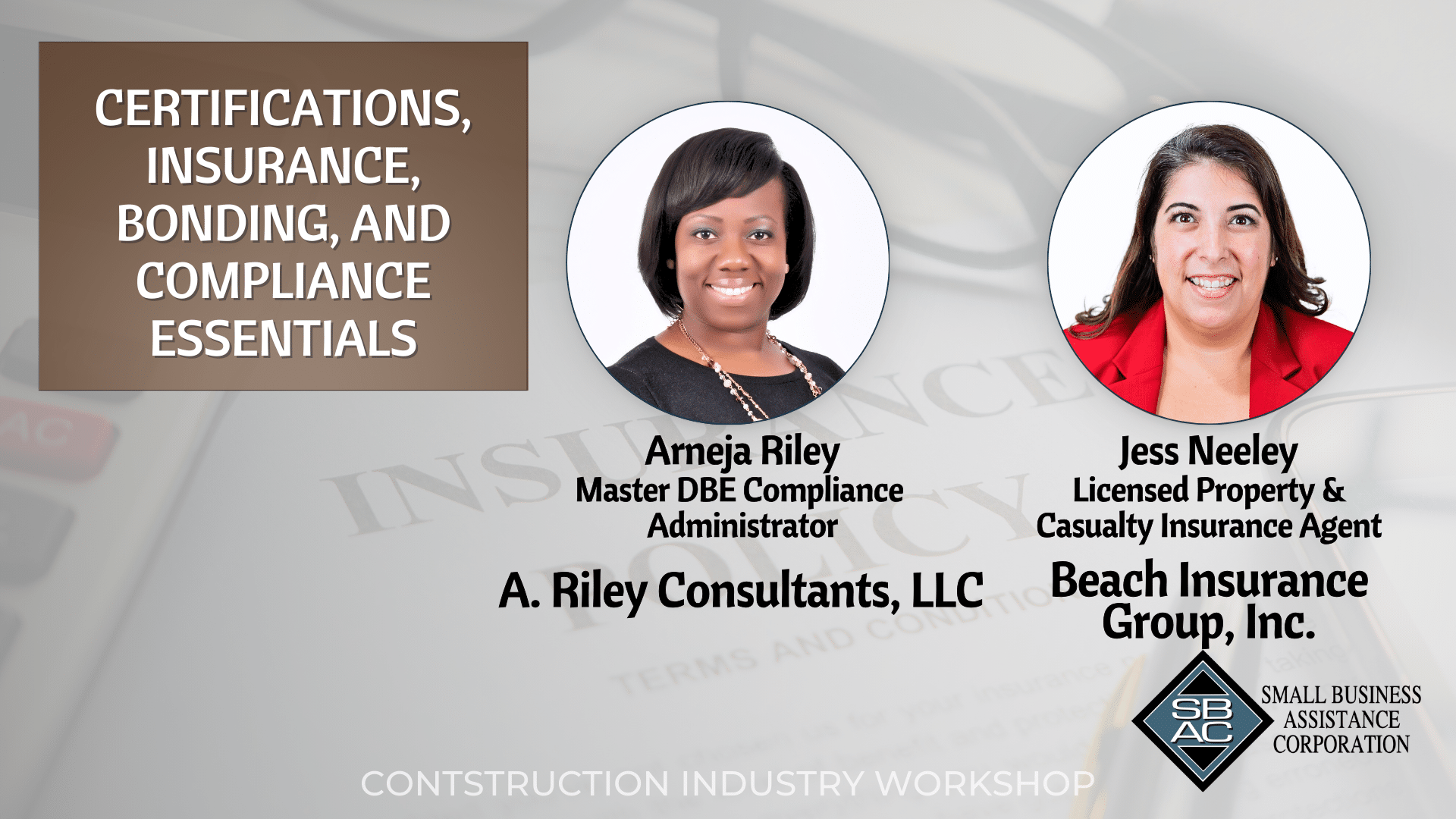 SBAC Construction Industry Workshop: Certification, Insurance, Bonding, and Compliance Essentials