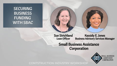 SBAC Construction Industry Workshop: Securing Business Funding with SBAC February 18, 2025 @ 4:00 pm - 5:00 pm Construction Industry Workshop Series Sue Strickland, Loan Officer and Kassidy E. Jones, Business Advisory Services Manager Small Business Assistance... View Details