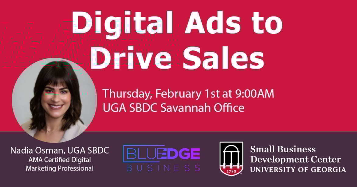 Digital Ads to Drive Sales is presented by our resource partner, UGA SBDC in Savannah, and our service provider, Blue Edge Business Solutions. Learn how your business can stand out using tools like Google Ads and social advertising while mastering the art of measuring ad success for your business.
