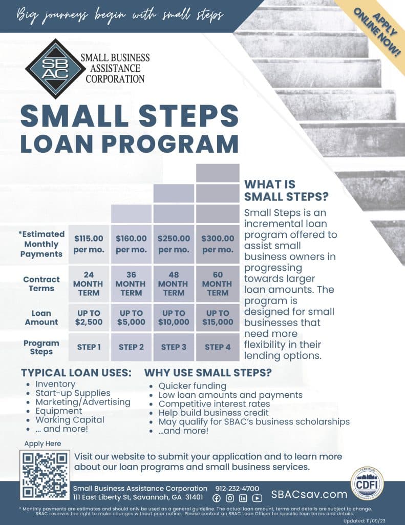 The Small Steps Workshop, hosted by the Small Business Assistance Corporation (SBAC), is designed for small business owners, entrepreneurs, and startups seeking accessible funding to grow their businesses. Attendees will learn about SBAC’s Small Steps Loan Program, which provides quick funding, low payment options, competitive interest rates, business credit-building opportunities, and potential business scholarships.